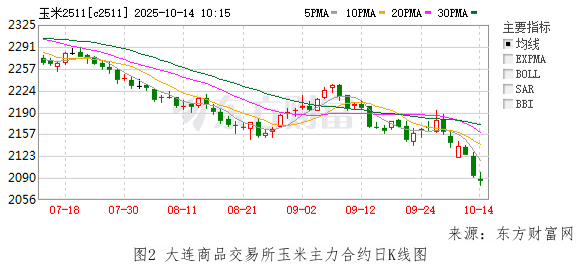 截至9月底,玉米2511合约收于2178元/吨,较8月底下跌13元/吨,跌幅0.60%。