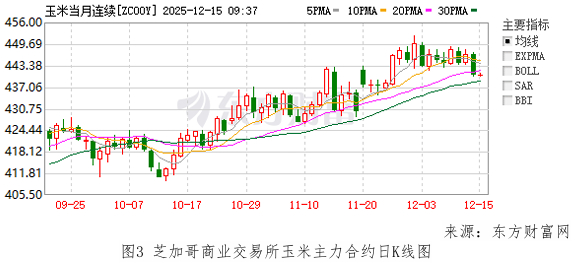 国内:据农业农村部《2025年11月份中国农产品供需形势分析》报告显示,11月将2025/26年度中国玉米产量上调至30000万吨,将2024/25年度中国玉米进口量下调至183万吨。新季玉米大量上市,市场供应充足,深加工企业利润较好,开工率有所提升,畜禽存栏处于高位,饲用消费刚需较强,中储粮直属库收购有序推进,天气转凉利于存粮,后期玉米有望以稳为主。